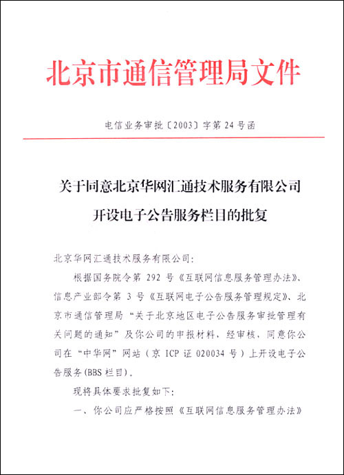 電信業(yè)務(wù)審批[2003]字第24號